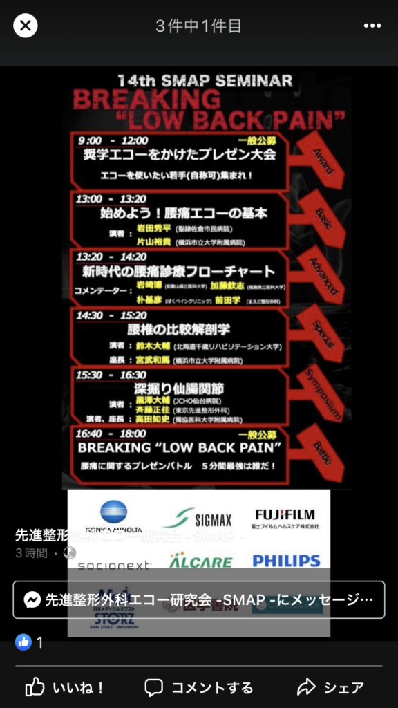 2月19日はリモ-トで先進整形外科エコ-研究会 通称SMAPです。