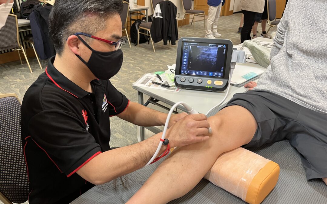 足関節・膝関節のエコ-描写および描写しながらの治療。